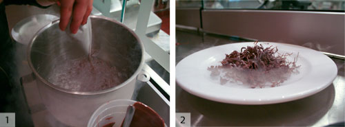 我要向您展示的**一項(xiàng)技術(shù)當(dāng)前在我們朋友Jean Jeans餐廳的Johnny Iuzzini的菜單上。他用短號將巧克力倒入液氮,從而制作出巧克力的花式和樹枝狀。