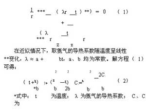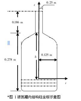 通過傅立葉導(dǎo)熱定律得到液氮罐內(nèi)空間溫度分布的微分方程為: